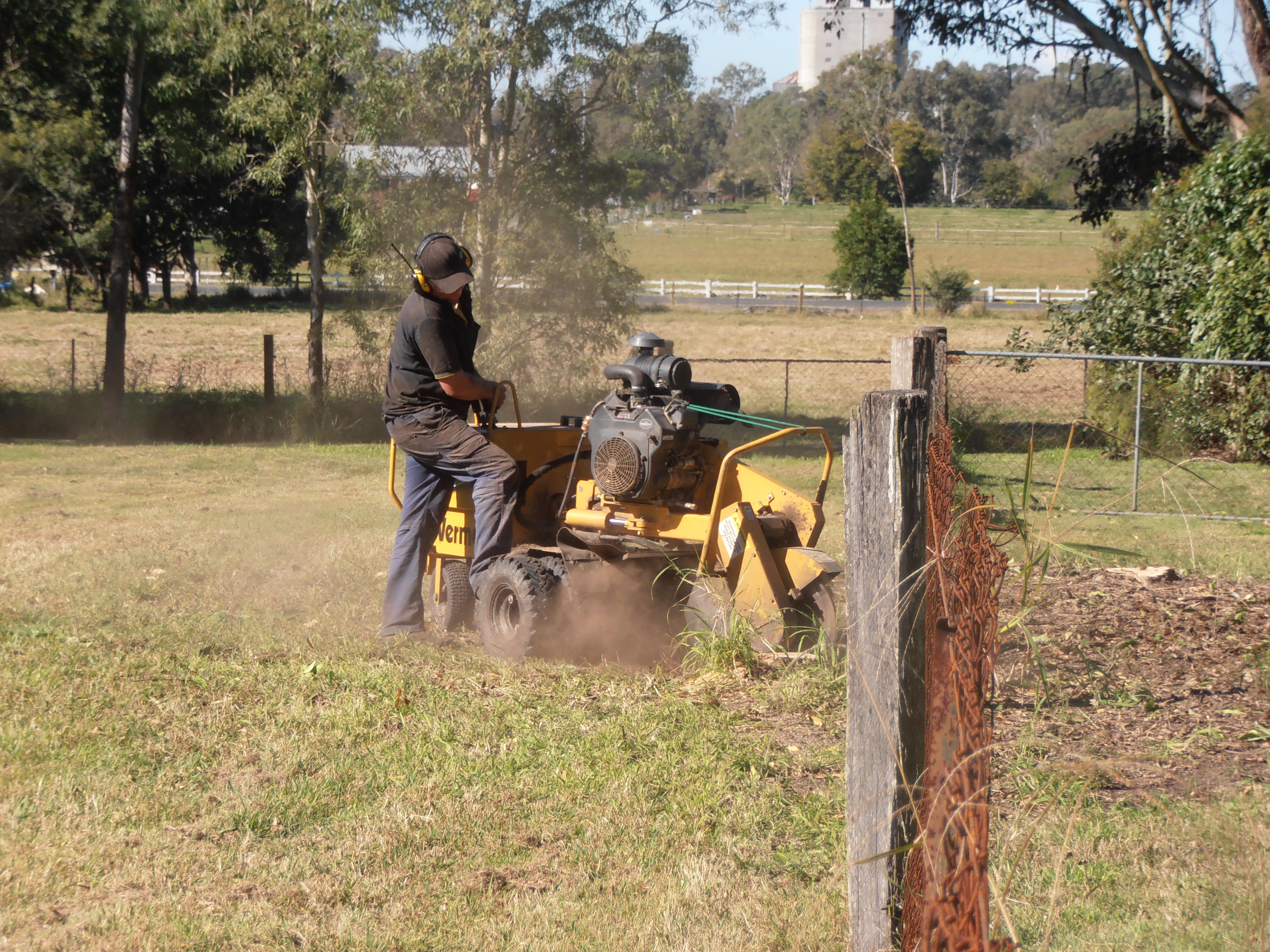 Ian was happy to get various old stumps ground down at the same time as the new Cadaghi stumps. They had been a nuisance for a long time when slashing or mowing. One big stump in the front paddock had a metal bar hidden inside which nearly brought the grinder to grief – so it will remain! We left 3 Cadaghis in one corner of the front paddock as the horses love to stand there in the shade.