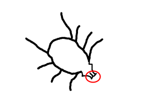 It is only the female ticks which have a a kind of beak for burrowing into the skin and sucking the blood. Baby ticks and male ticks may wander over your body and can be flicked off. This crude drawing emphasises the beak of the female tick.