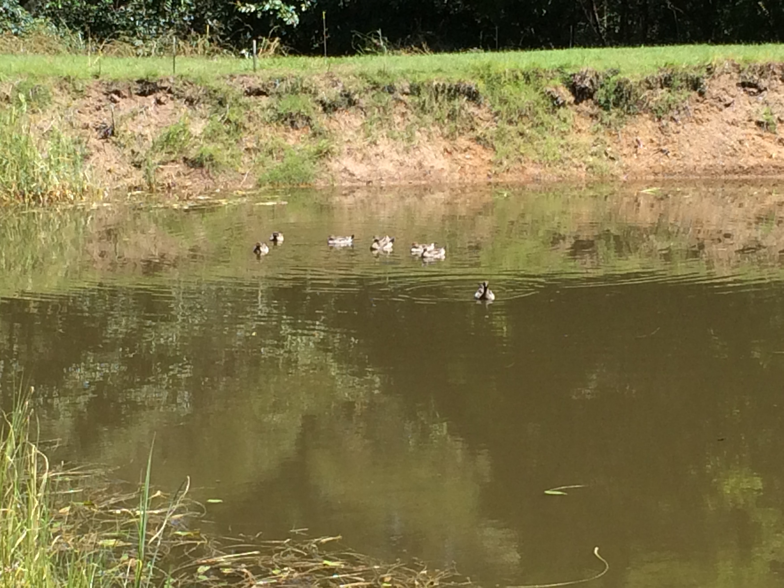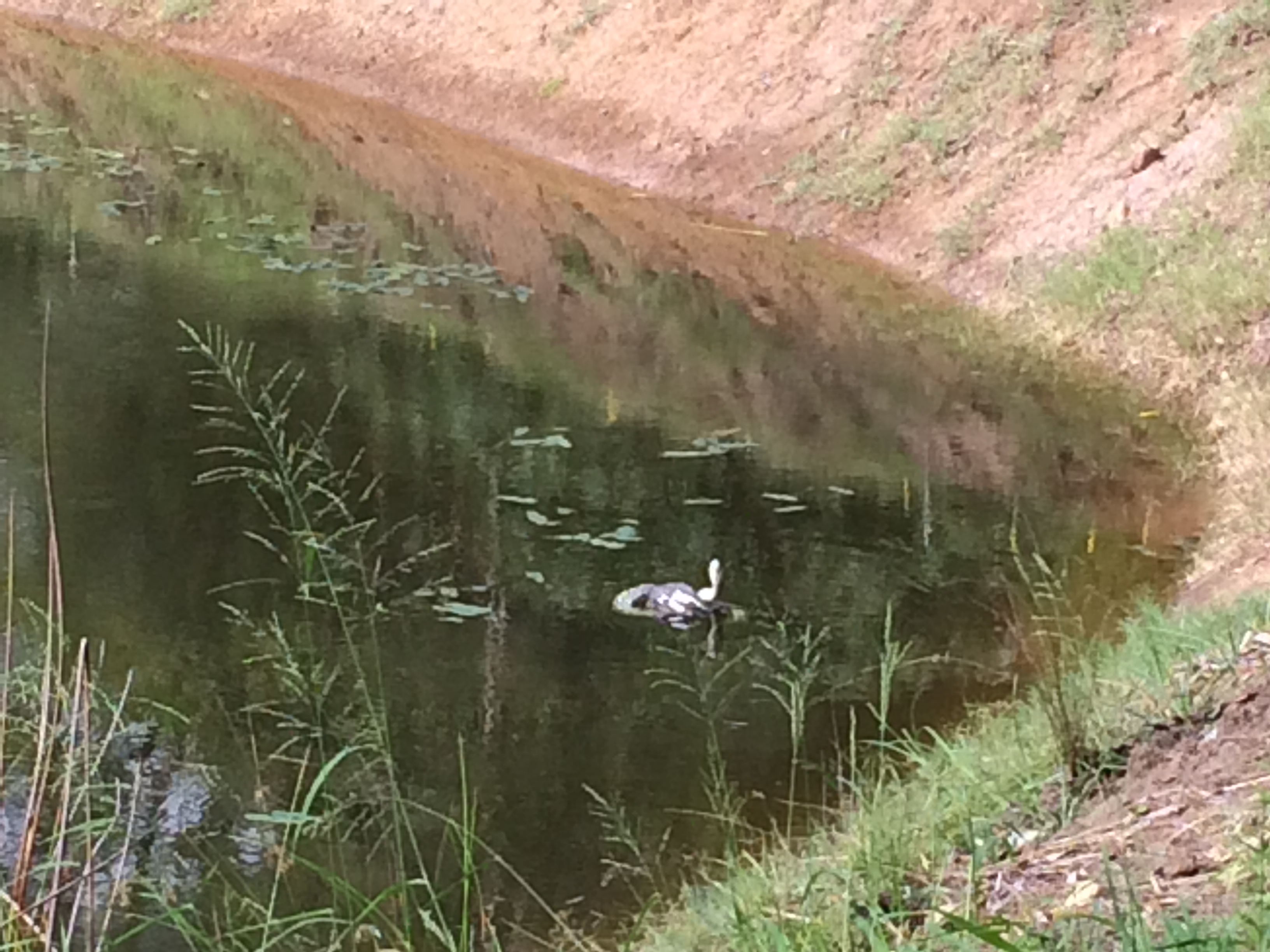 Whist I was digging up weeds in the side paddock I was struck by something new floating in the dam. From a distance I first thought it must be a dead bird …