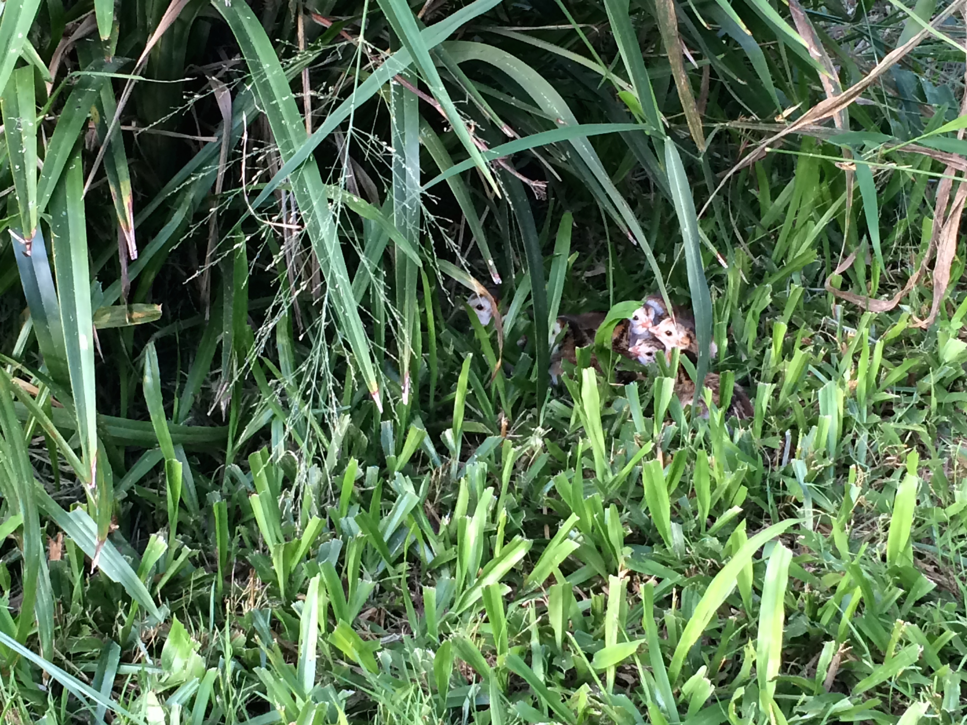 Carpet Pythons must be finding plenty of food at our place. We know a carpet python had eaten 2 nests of eggs laid in 2 different places by our female Guinea, Pip. And a third batch she laid were broken into by crows. Eventually she found a safer place and laid another 18 eggs. Yesterday they hatched but we are wondering about their chances of survival.