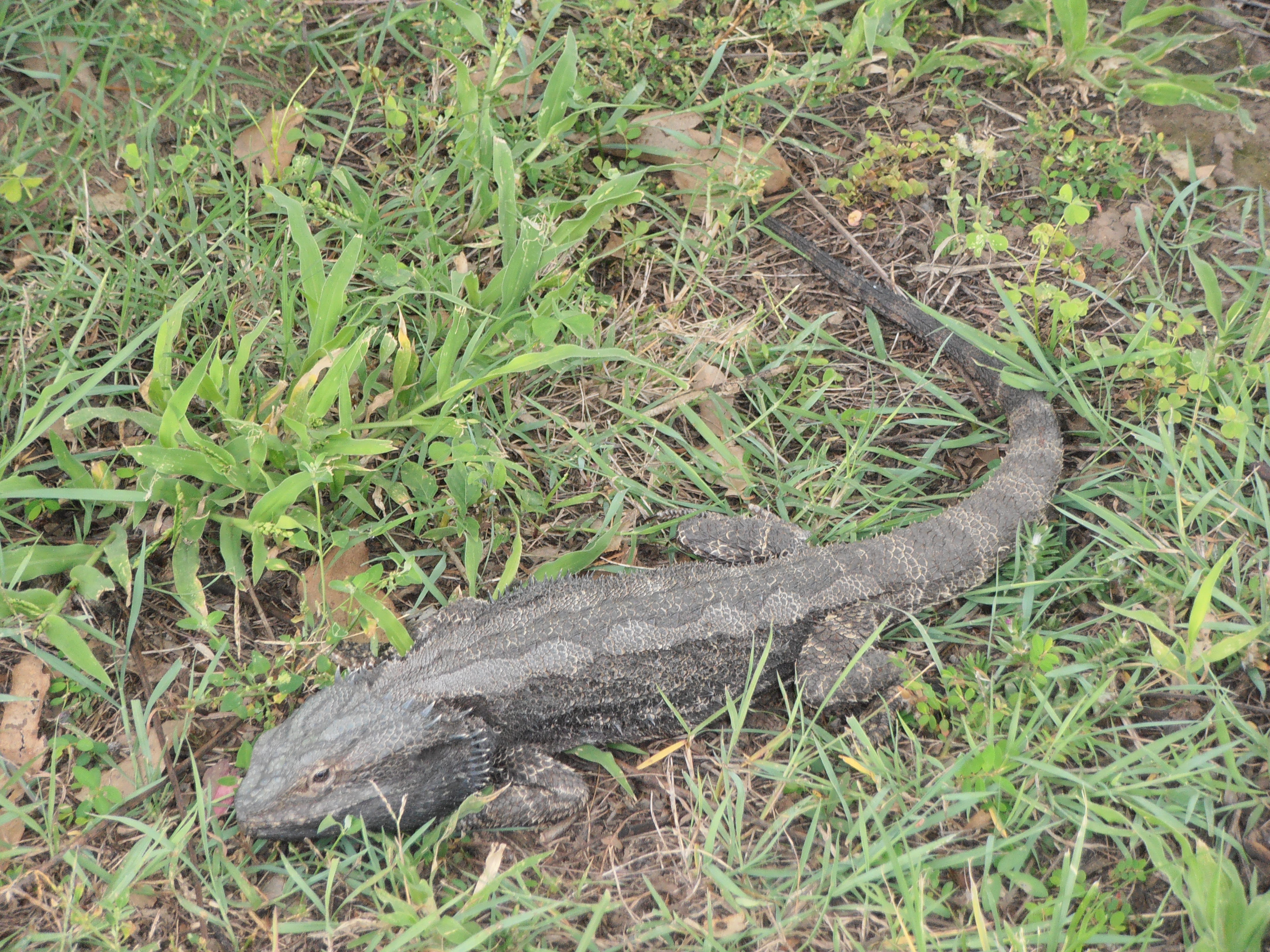our resident bearded dragon is later squashed when crossing Moggill Rd
