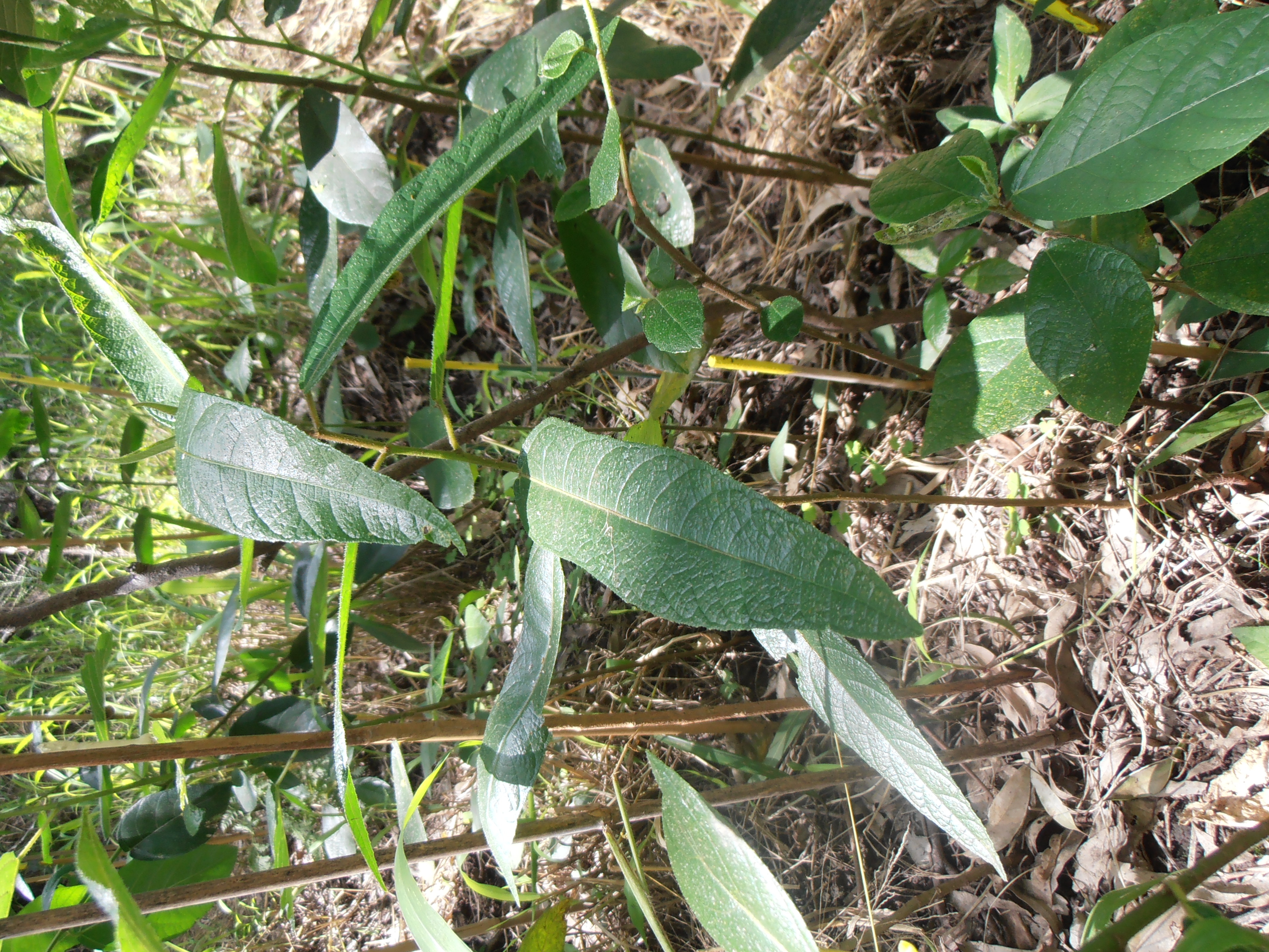 The leaves are not serrated and they are very long but they are not lobed (not F. coronata but unlike many F. fraseri). The leaves do not feel very sandpapery (so more likely to be F. fraseri or possibly F. opposita). There is no fruit which probably indicates that the plant is too young to bear fruit – but it also is in keeping with a F. fraseri which would not have fruit in February. However it stands in the midst of a group of new F. oppositas (suggesting it is also an F. opposita) which have self-generated along a water course (which is also a feature of F. coronata). The leaves are partly opposite and partly alternate.