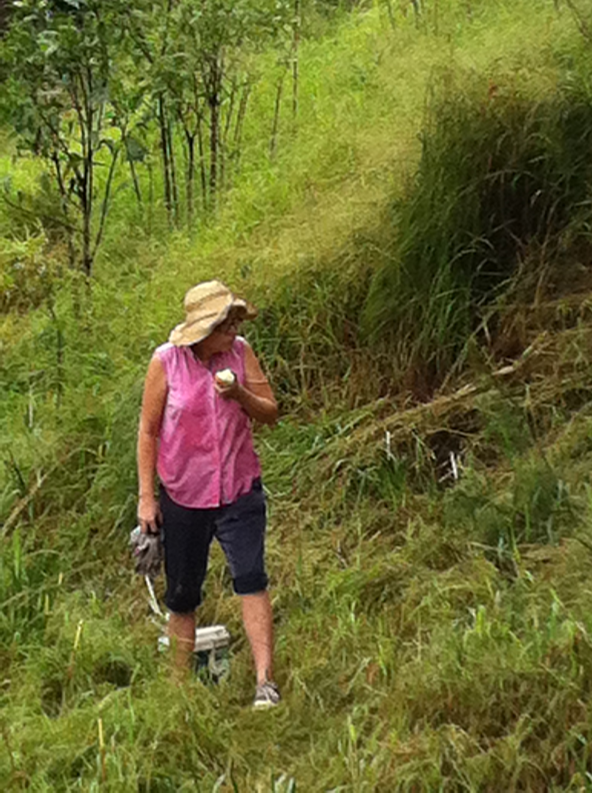 eating an apple while having a break from the clearing